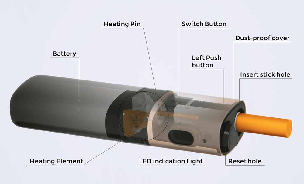 內置加熱針可在 15 秒內將煙草加熱到 340°C。