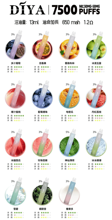 DIYA叮啞拋棄式7500 Puffs一次性電子煙3%